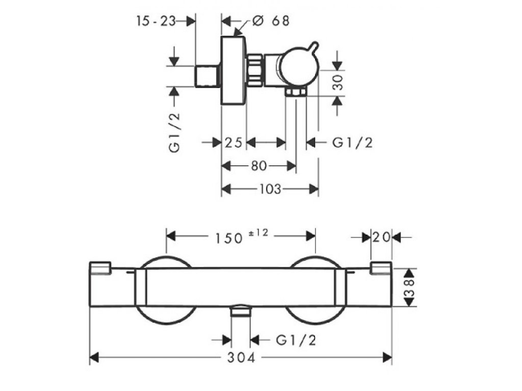 Sprchová stenová termostatická vodovodná batéria pre jedno odberné miesto.