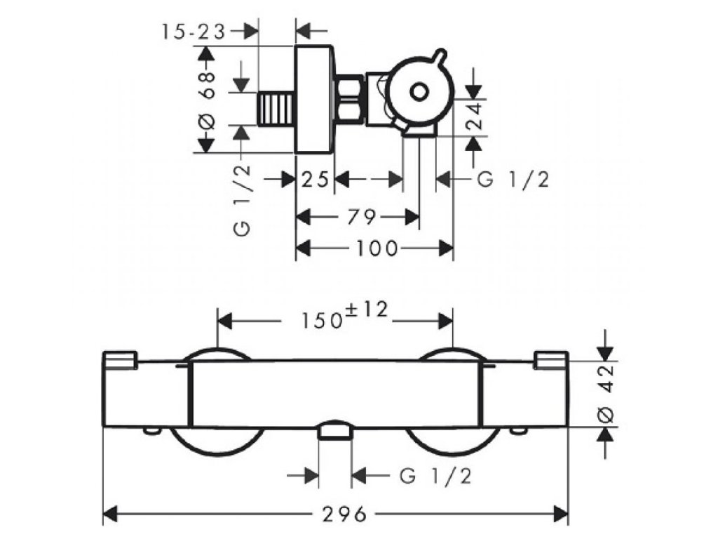 Sprchová nástenná termostatická vodovodná batéria pre jedno odberné miesto. Dodávaná bez sprchového príslušenstva.