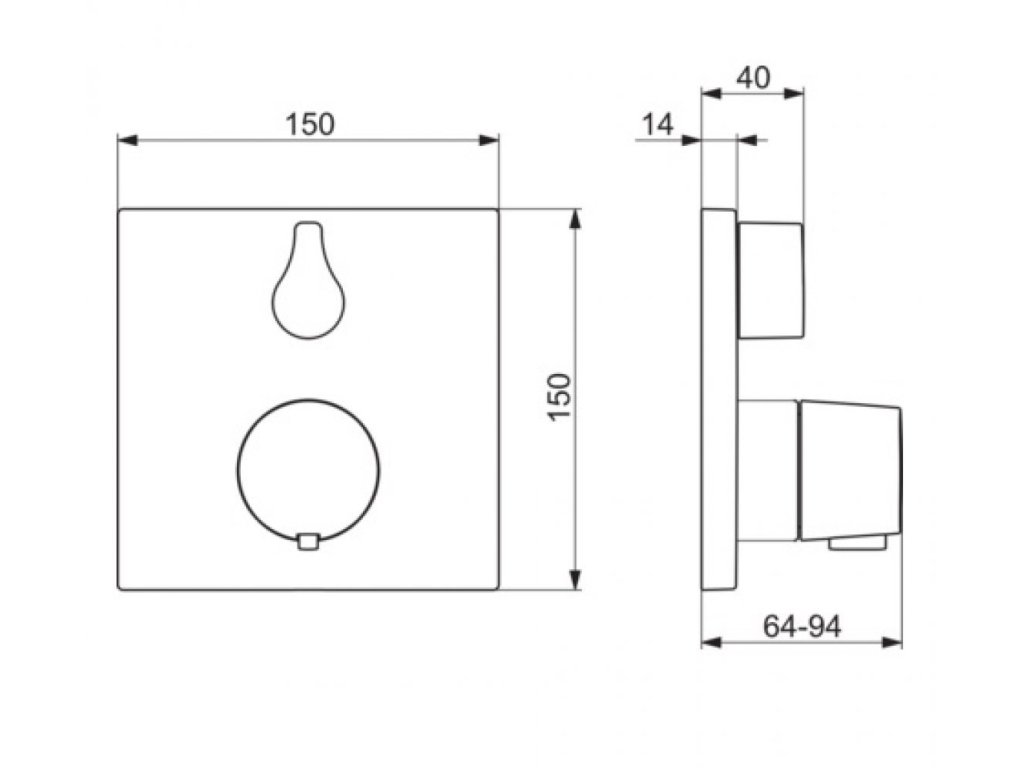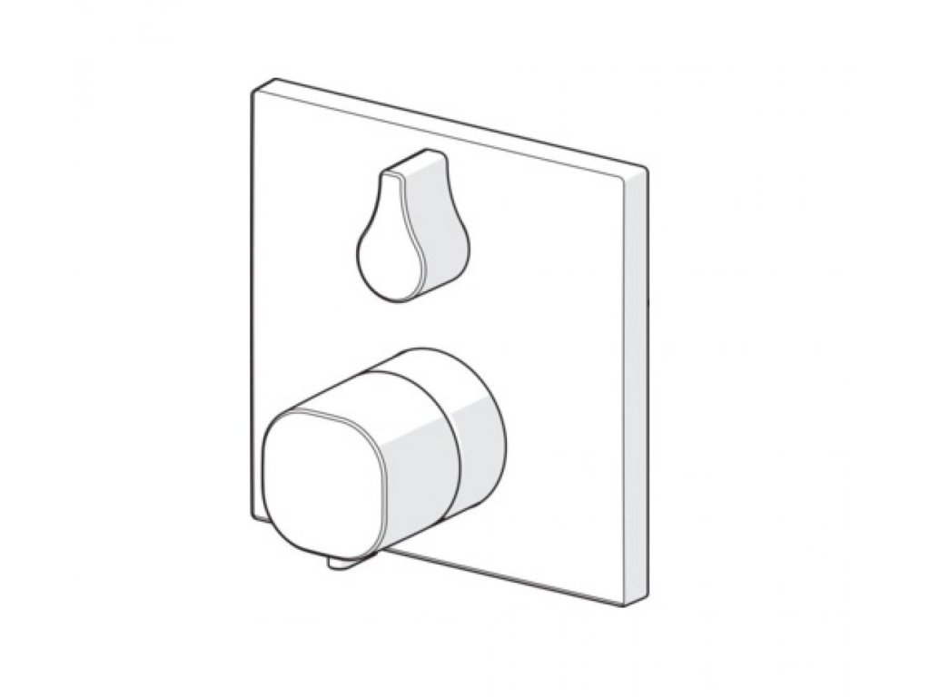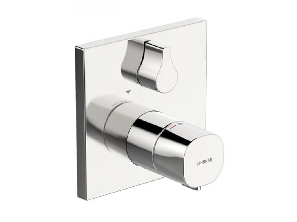 HANSALIVING - termostatická vaňová podomietková batéria so štvorcovou rozetou. S integrovaným prepínačom ovládania prietoku vody v páke.