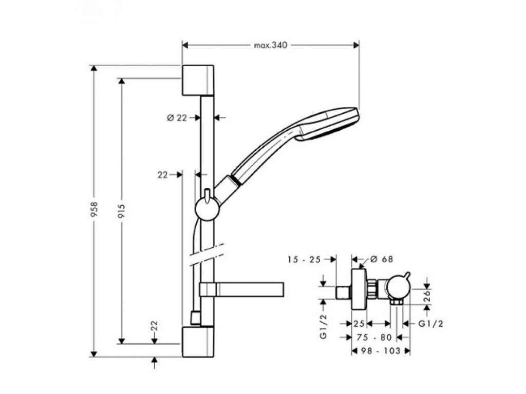 Sprchová súprava CROMA 100 MULTI pozostáva z: