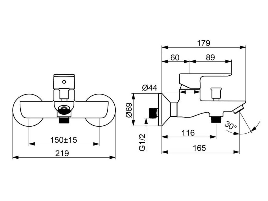HANSABASIC - páková vaňová vodovodná batéria s nástennou montážou. S ťažným prepínačom vaňa/sprcha, s automatickým vrátením do pôvodnej polohy.