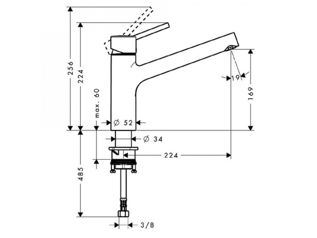 Páková drezová stojanková vodovodná batéria s ramienkom otočným v rozsahu 150°.