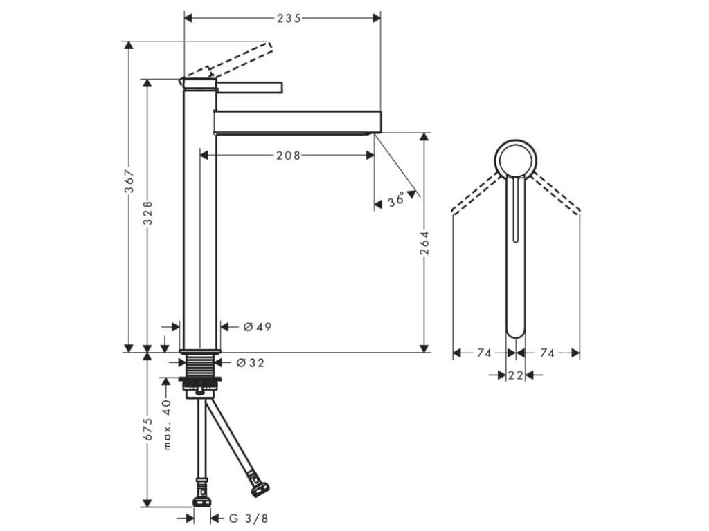 Stojanková vodovodná batéria FINORIS značky Hansgrohe, vhodná k umývadlovým misiam. Dodávaná s kovovou odtokovou súpravou Push-Open G 11.