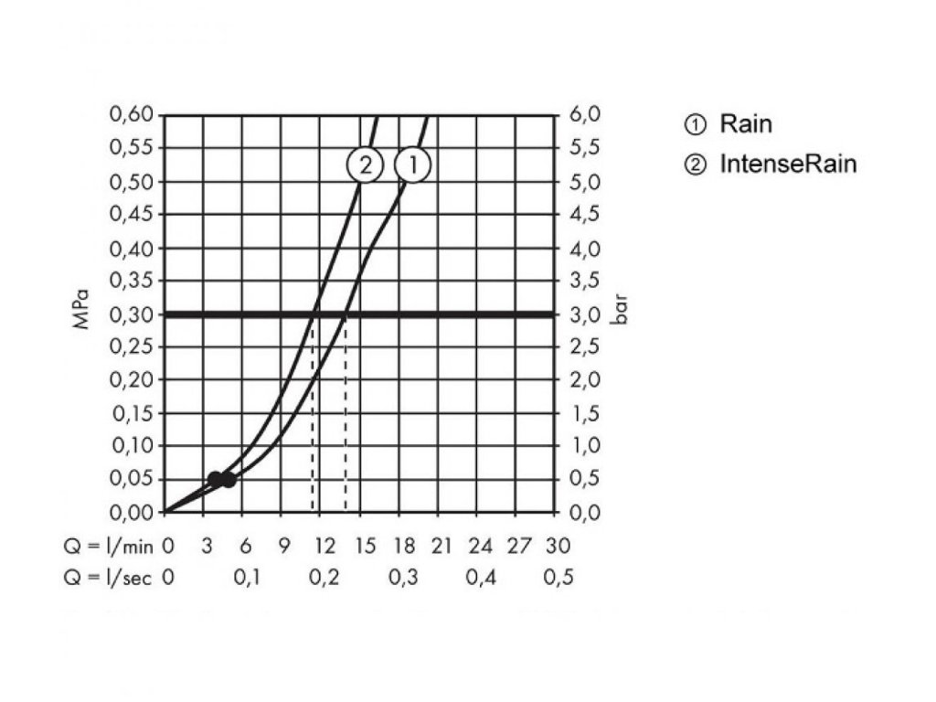 • ručná sprcha s druhom prúdu: Rain, IntenseRain. Prepínanie druhov prúdu otočením koncovky.