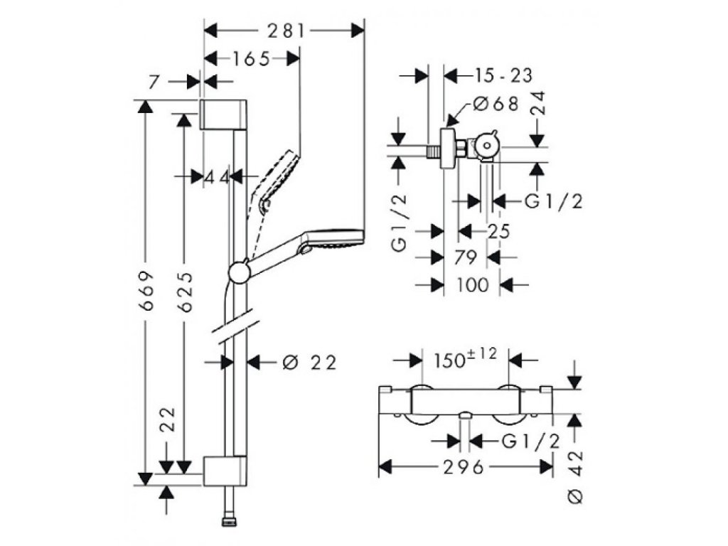 • sprchová tyč, dĺžka 650 mm, priemer 22 mm