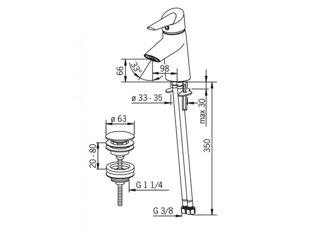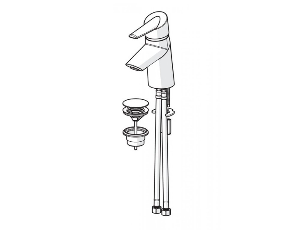 HANSAFIT - umývadlová stojanková vodovodná batéria s odtokovou súpravou s tiahlom. Ovláda sa pomocou páky Easy-Grip pre ľahké uchopenie so symbolom teplej i studenej vody. S ECO funkciou pre obmedzenie prietoku vody.