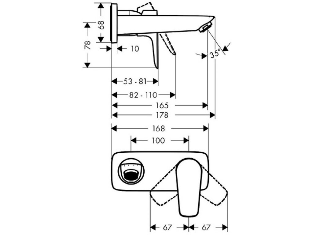Páková umývadlová podomietková vodovodná batéria s výtokom.