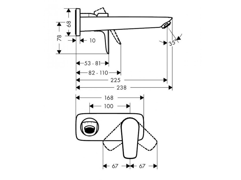 Páková umývadlová podomietková vodovodná batéria s výtokom. Rukovúť je možné namontovať vpravo alebo vľavo podľa inštalácie podomietkového telesa.