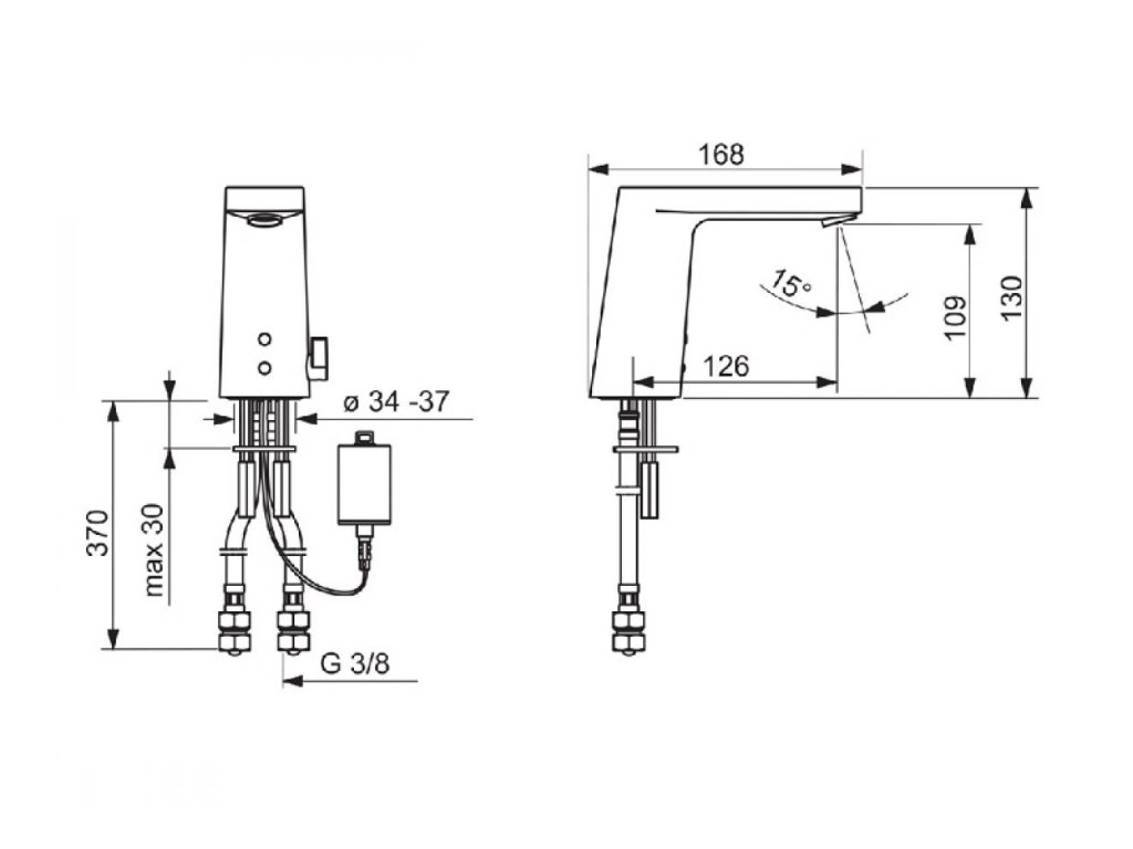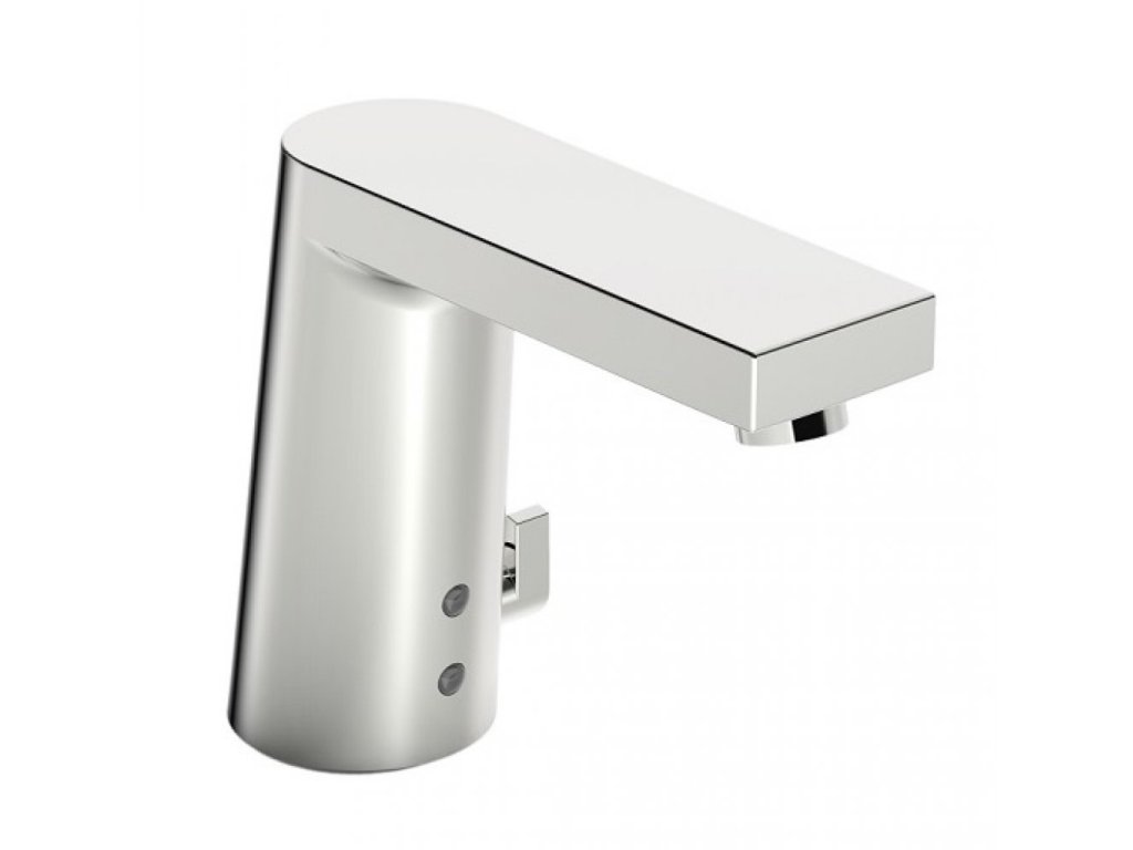 HANSASTELA - umývadlová senzorová batéria s ovládacou rukoväťou pre reguláciu teploty vody. S tlačným uzáverom odpadu.