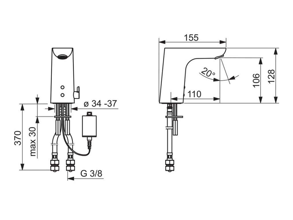 Umývadlová batéria senzorová HANSALIGNA, Bluetooth, batéria 6V, čierna