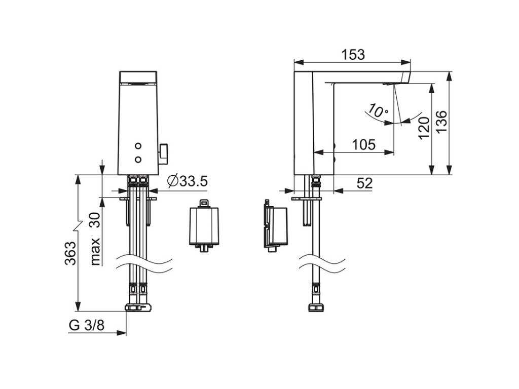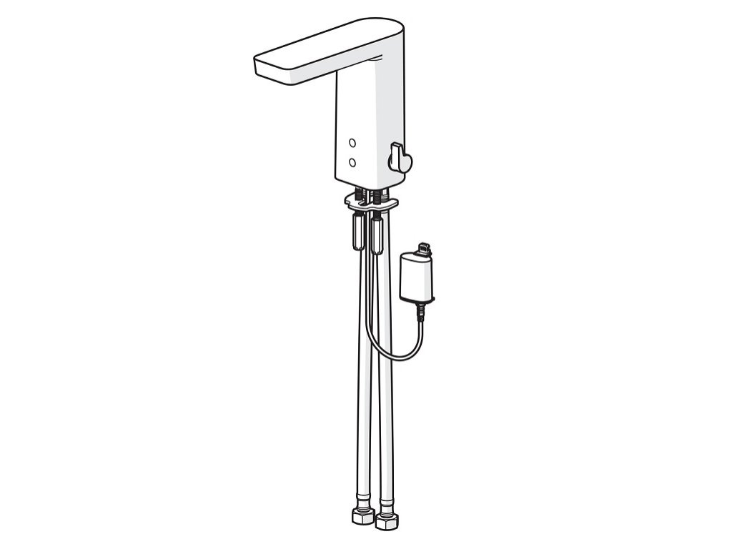 HANSASTELA ECO+ je umývadlová senzorová batéria na studenú alebo predzmiešanú vodu. Pevné liate výtokové ramienko a rukoväť regulátora teploty vody.