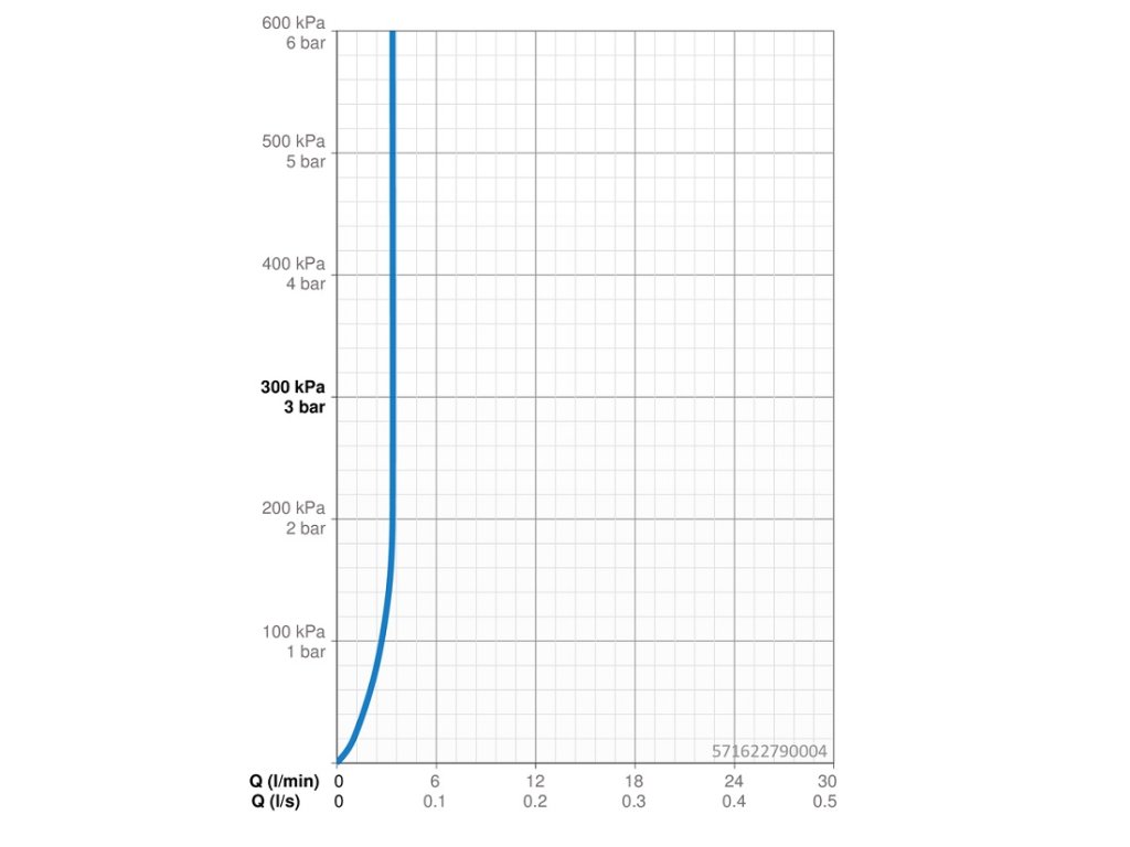 Prietok meraný pri hydraulickom tlaku 3 bar (s ovládačom prietoku): 3,36 l/min.