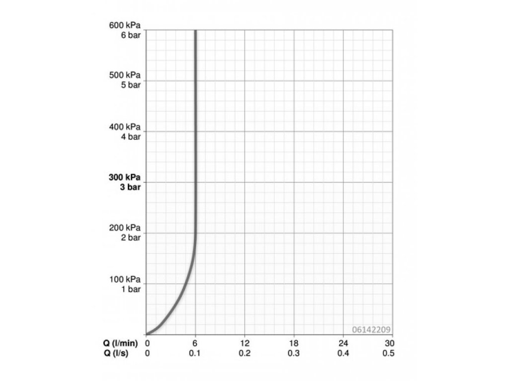Prietok meraný pri hydraulickom tlaku 3 bar (s ovládačom prietoku): 6l/min.