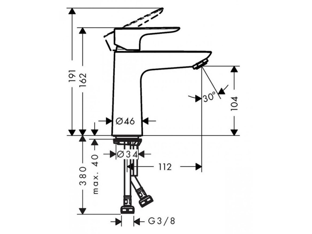 Páková umývadlová stojanková vodovodná batéria bez odtokovej garnitúry.