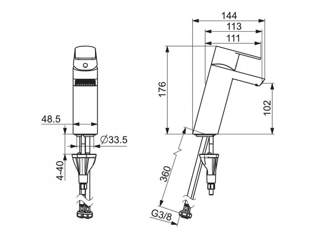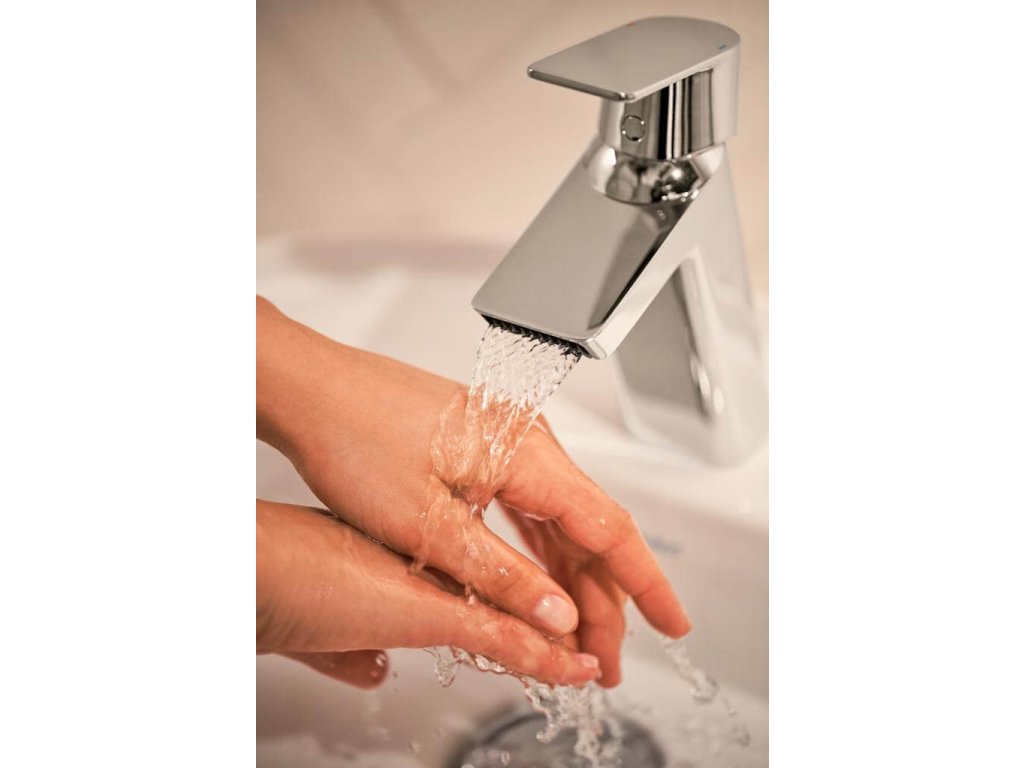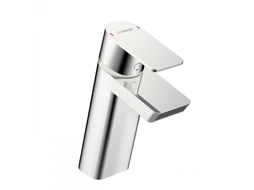 HANSASTELA - umývadlová stojanková vodovodná batéria bez odtokovej garnitúry. Ovláda sa pomocou páky so symbolom teplej i studenej vody. Má pevné výtokové rameno. Súčasťou je aerátor s laminárnym prúdom vody.