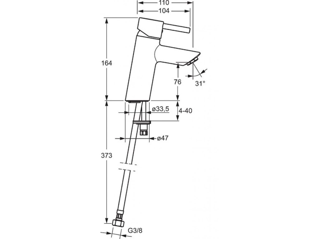 HANSAVANTIS Style XL - umývadlová stojanková XL vodovodná batéria s PIN - tyčinkovou ovládacou pákou. Bez odtokovej garnitúry. Má pevné výtokové rameno.