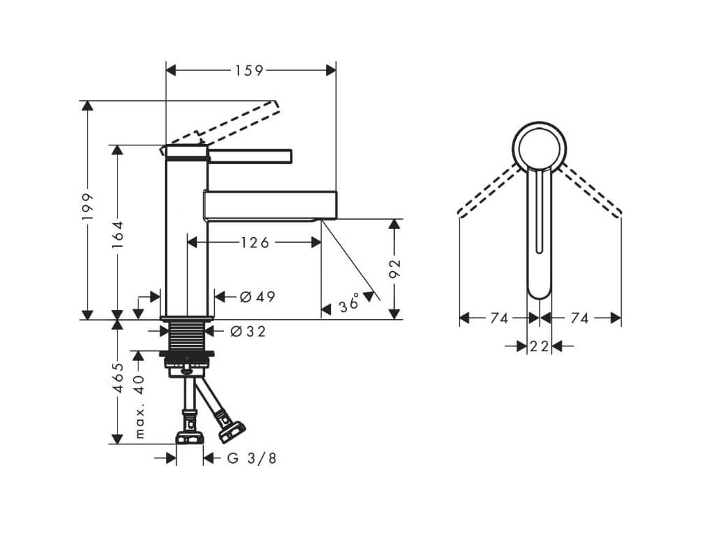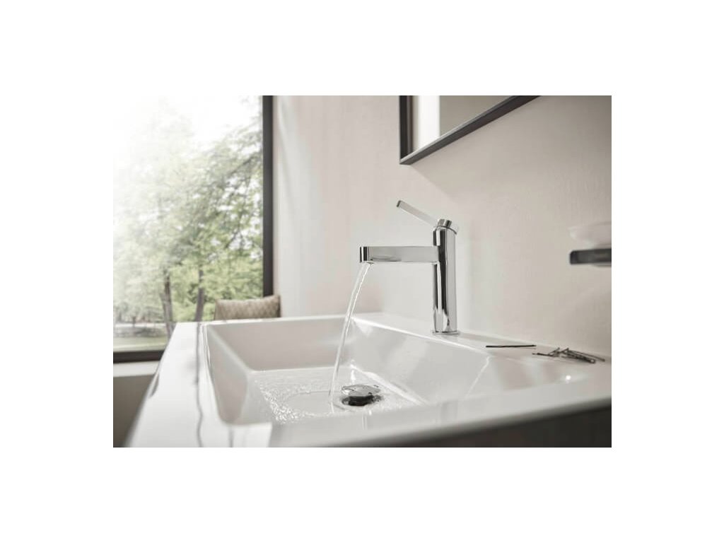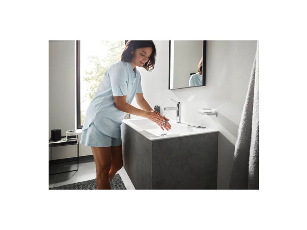 Umývadlová stojanková vodovodná batéria FINORIS značky Hansgrohe, dodávaná s kovovou odtokovou súpravou Push-Open G 11.