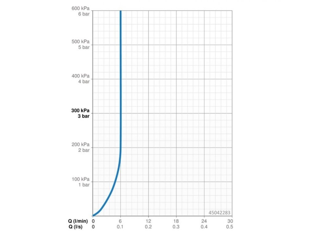 Prietok meraný pri hydraulickom tlaku 3bar: 6l/min.