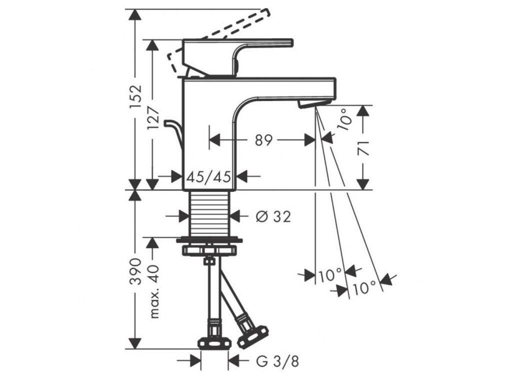 Umývadlová stojanková vodovodná batéria VERNIS SHAPE značky Hansgrohe. S odtokovou garnitúrou s tiahlom, G 11.