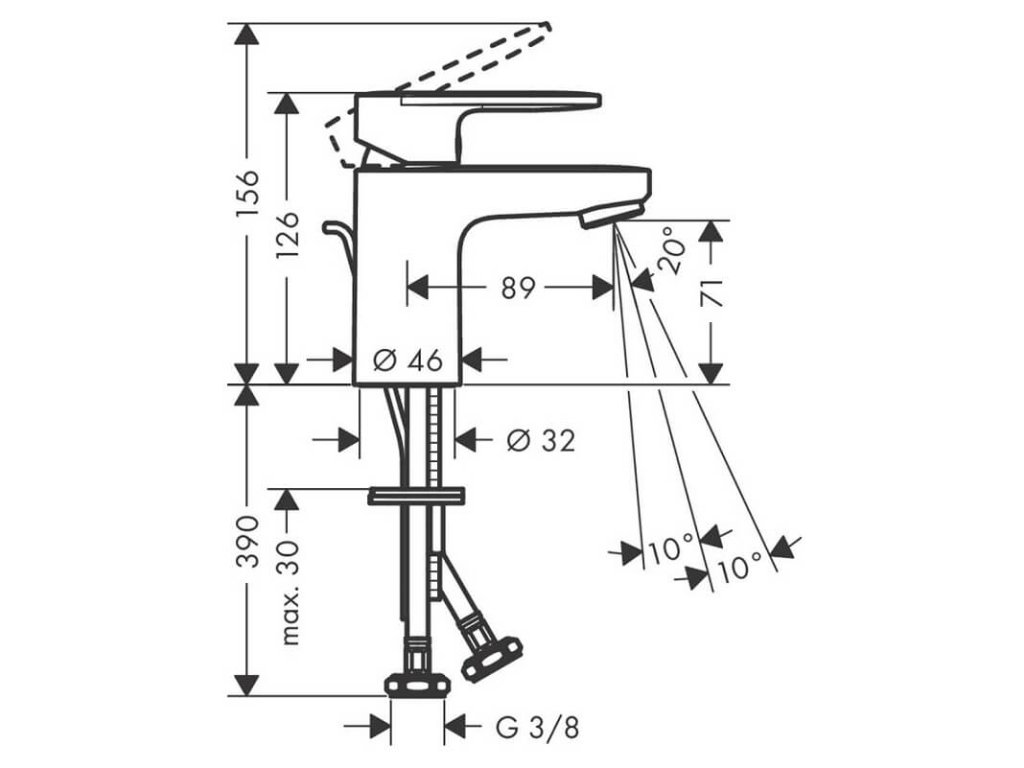 Umývadlová stojanková vodovodná batéria VERNIS BLEND značky Hansgrohe. S odtokovou garnitúrou s tiahlom, G 11.