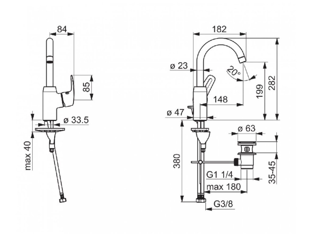 Výtokové rameno je otočné, s možnosťou obmedzenia rozsahu otáčania.