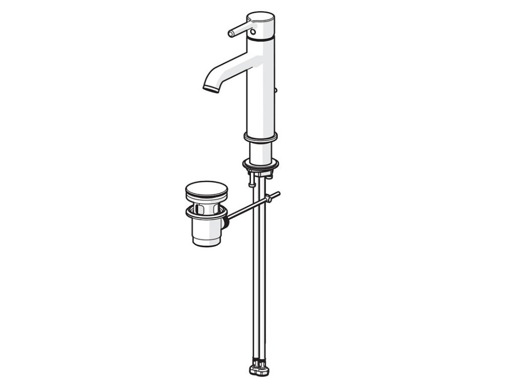 HANSAVANTIS Style - umývadlová stojanková vodovodná batéria s PIN-tyčinkovou pákou a pevným výtokovým ramenom. S odtokovou garnitúrou s tiahlom.