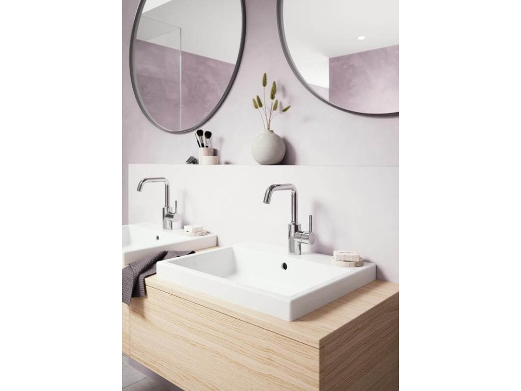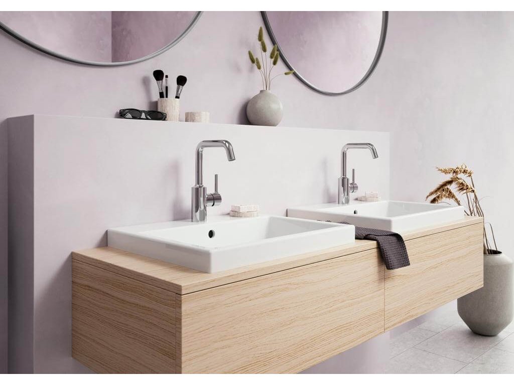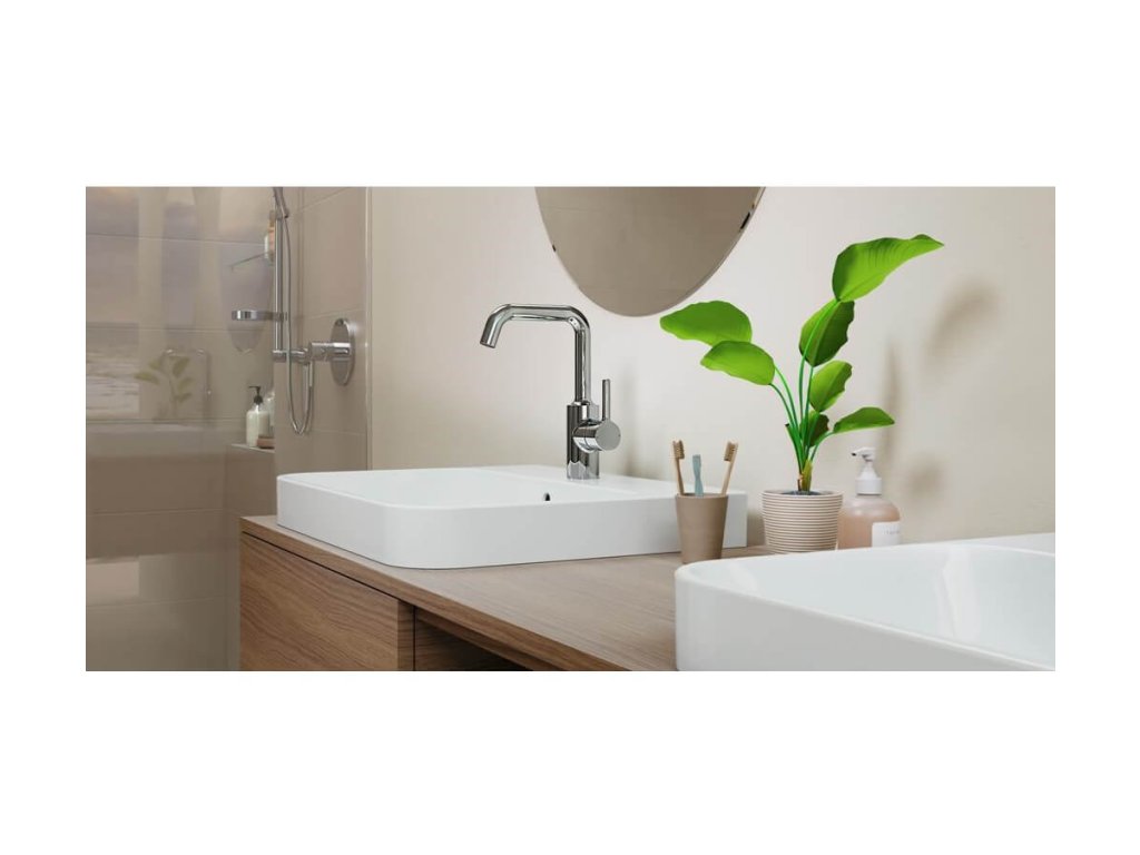 HANSAVANTIS - umývadlová stojanková batéria s otočným výtokovým ramienkom a s PIN-tyčinkovou pákou. PCA® - aerátor s konštantným prietokom vody aj pri kolísaní tlaku.