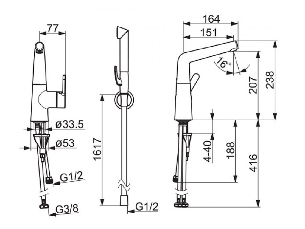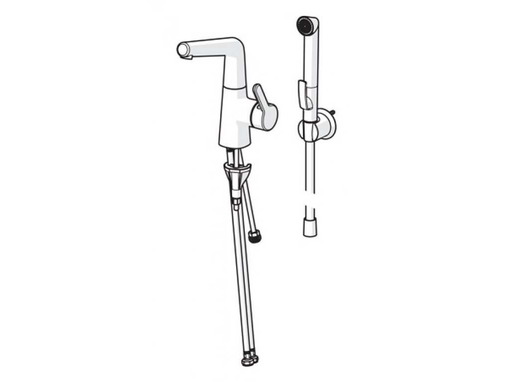 HANSADESIGNO - umývadlová stojanková vodovodná batéria s ručnou sprchou Bidetta. Dodávaná i s držiakom sprchy a so sprchovou hadicou dĺžky 1500mm.