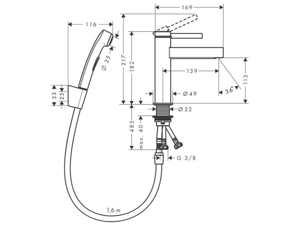 Finoris je umývadlová stojanková vodovodná batéria z dielne Hansgrohe. Dodávaná je s bidetovou ručnou sprškou Bidette, so sprchovým držiakom, sprchovou hadicou dĺžky 1600 mm a odtokovoou súpravou Push-Open.
