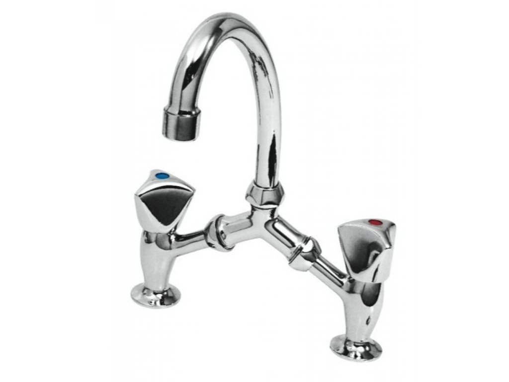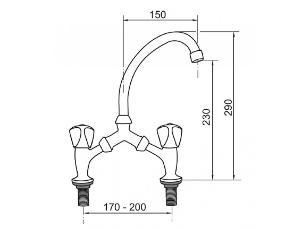Klasická drezová dvojotvorová stojanková vodovodná batéria. Nastaviteľný rozstup prívodných častí armatúry je v rozmedzí 170 - 200mm.
