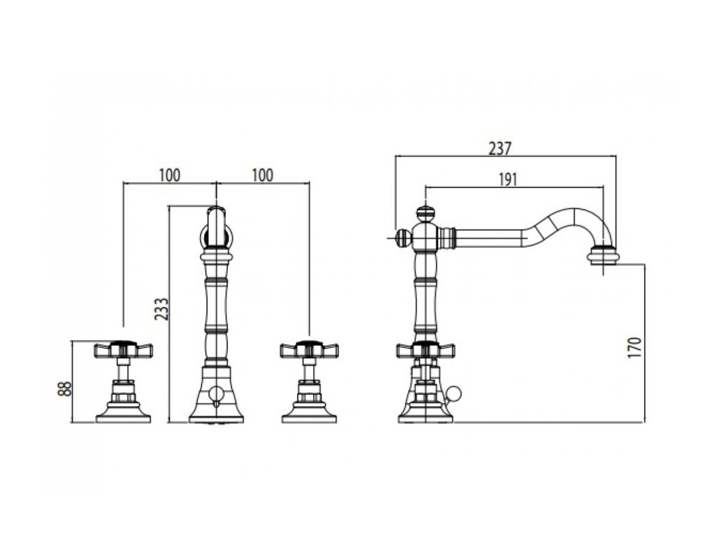 Klasická umývadlová stojanková vodovodná batéria s odtokovou garnitúrou. Batéria je osadená keramickými vrškami so štandardne pólovaným ovládaním. Znamená to, že studená voda sa otvára resp. zatvára opačným smerom ako teplá.
