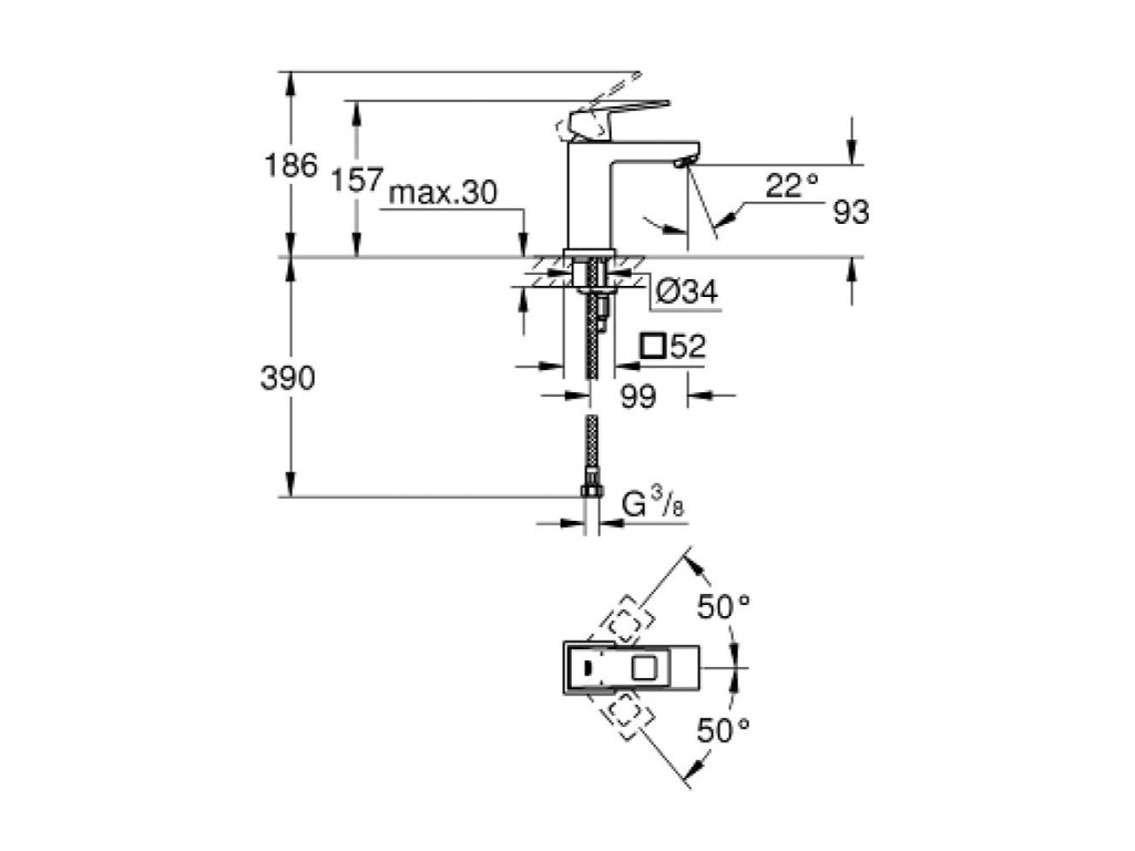 Umývadlová batéria EUROCUBE "S" EcoJoy, bez odtokovej súpravy, chróm