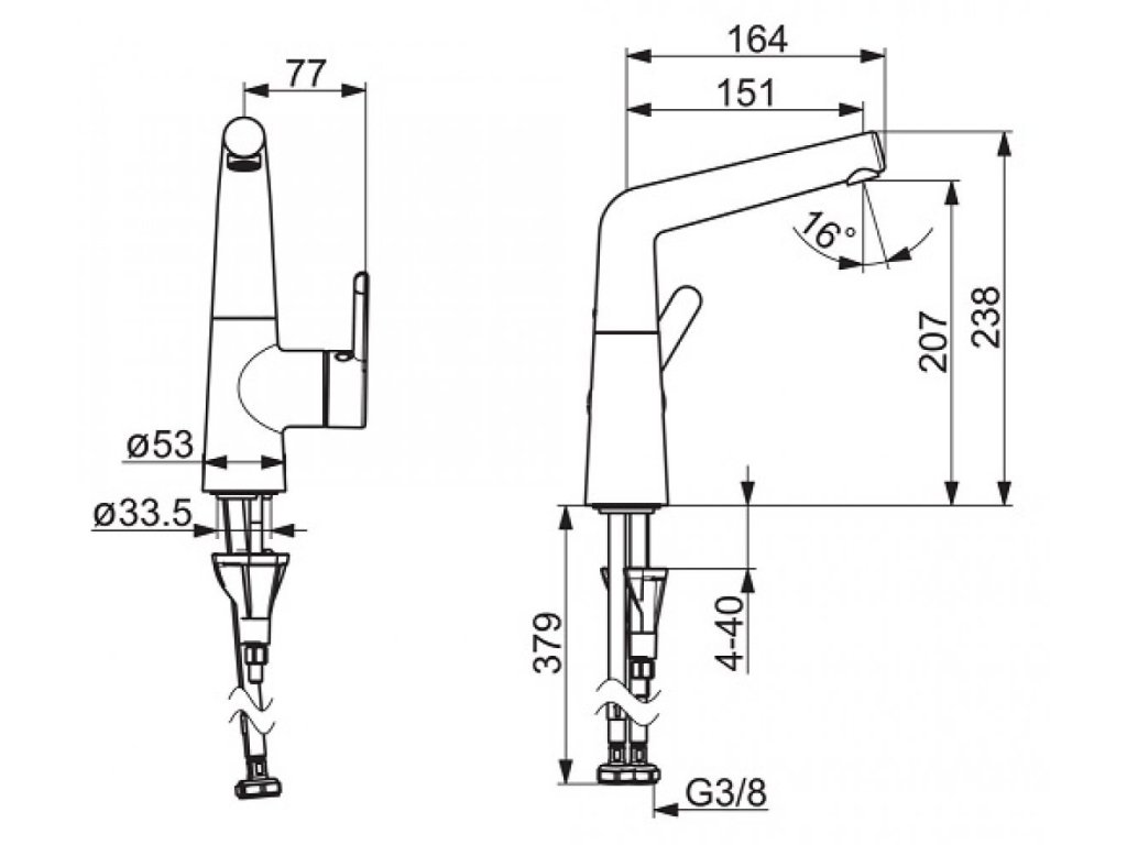 Otočné výtokové rameno. Rozsah otáčania výtokového ramena 120°.
