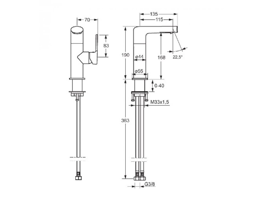 Pripojenie pomocou tlakových hadíc G 3/8.