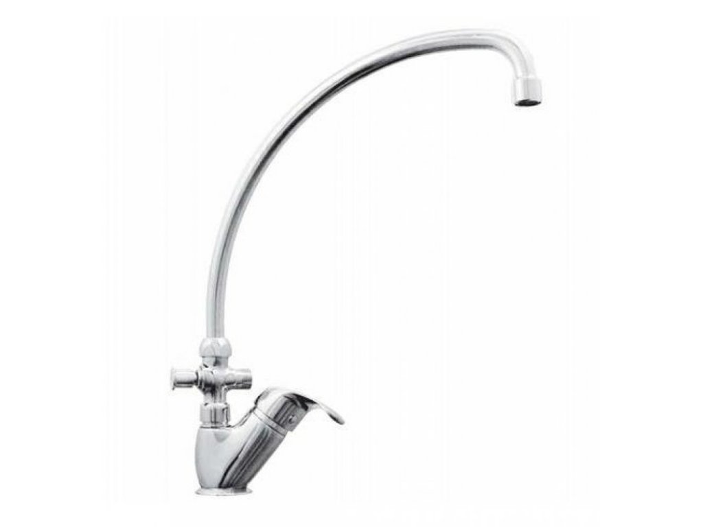 Páková umývadlová či drezová stojanková vodovodná batéria do bytového jadra s horným trubkovým 30cm "T" výtokovým ramenom.