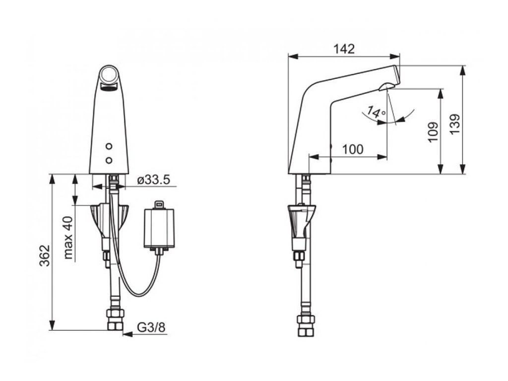 Pripojenie: flexibilné pripojovacie hadičky, jedna medená pripojovacia trubička pre studenú alebo vopred zmiešanú vodu.