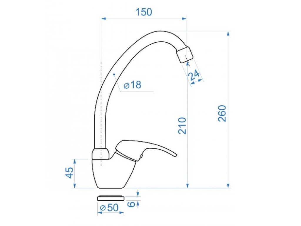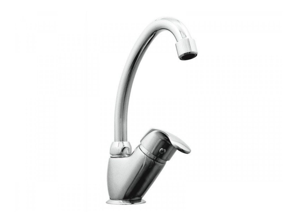 Páková drezová alebo umývadlová stojanková vodovodná batéria s horným krátkym trubkovým výtokovým ramenom.