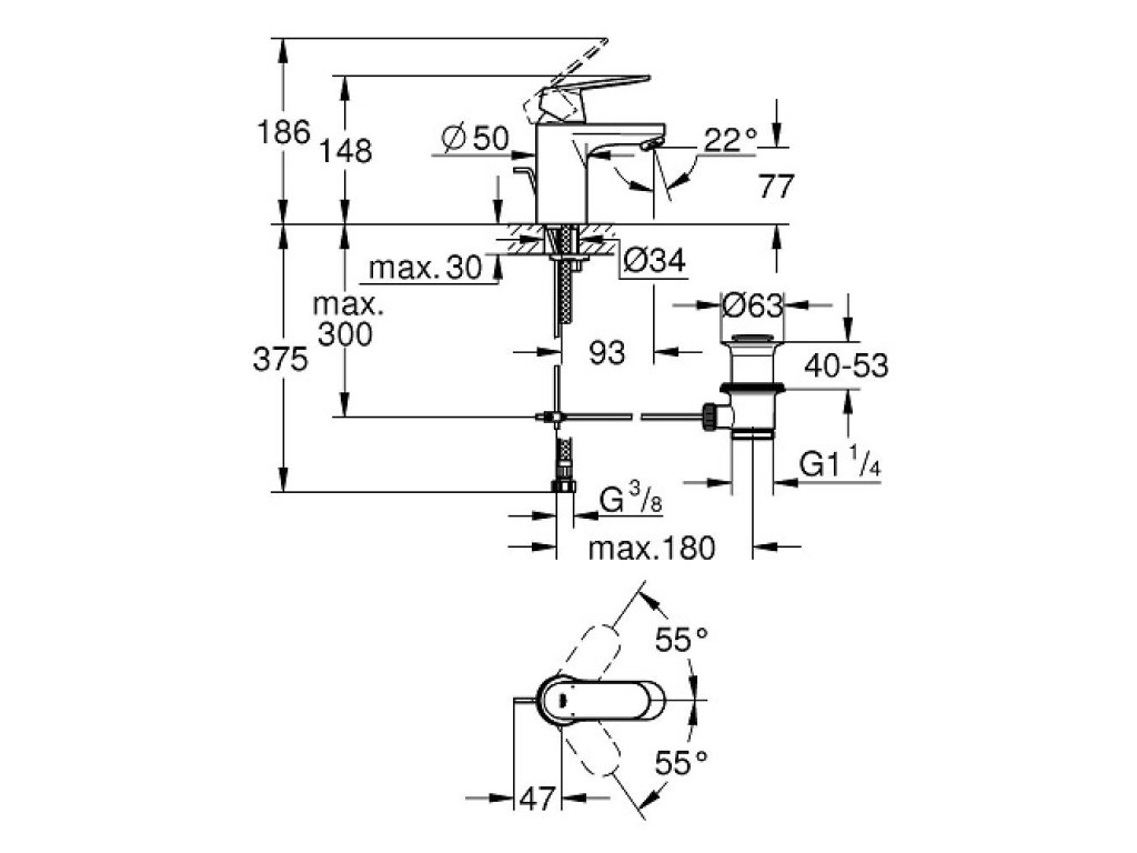 Umývadlová batéria EUROSMART COSMOPOLITAN "S" EcoJoy, odtoková súprava