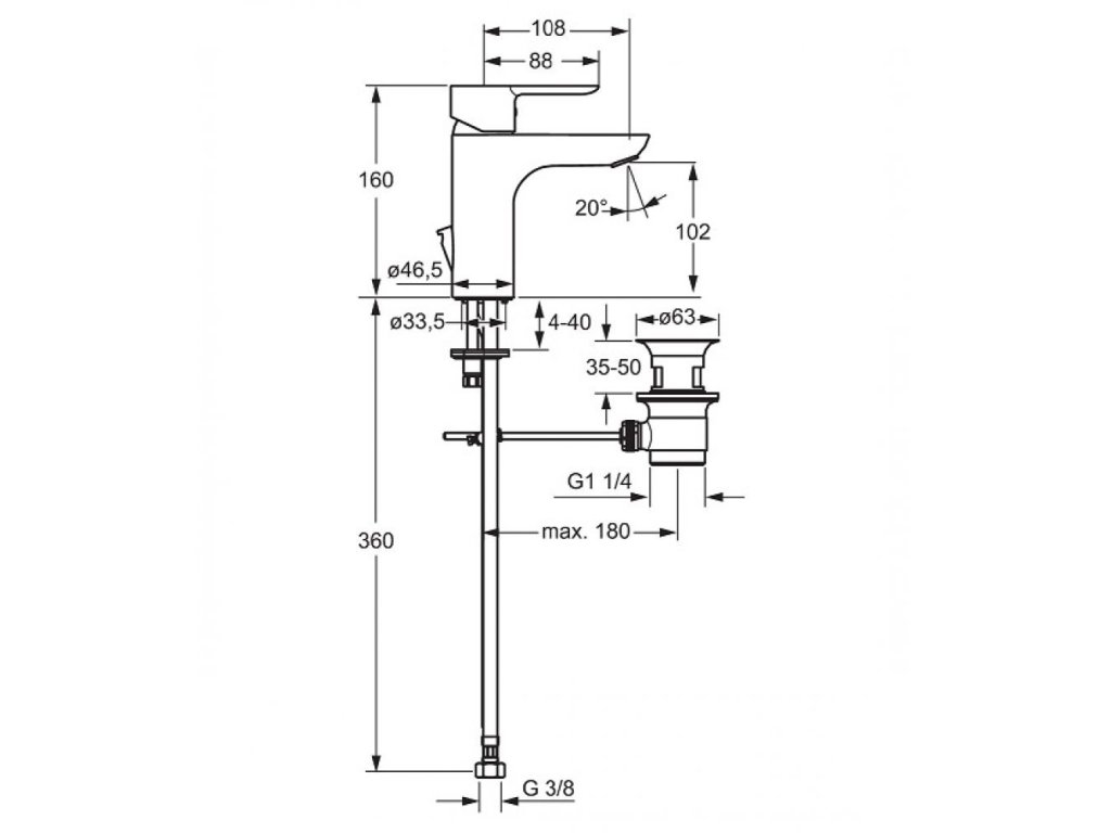 • pripojenie pomocou tlakových hadíc G 3/8