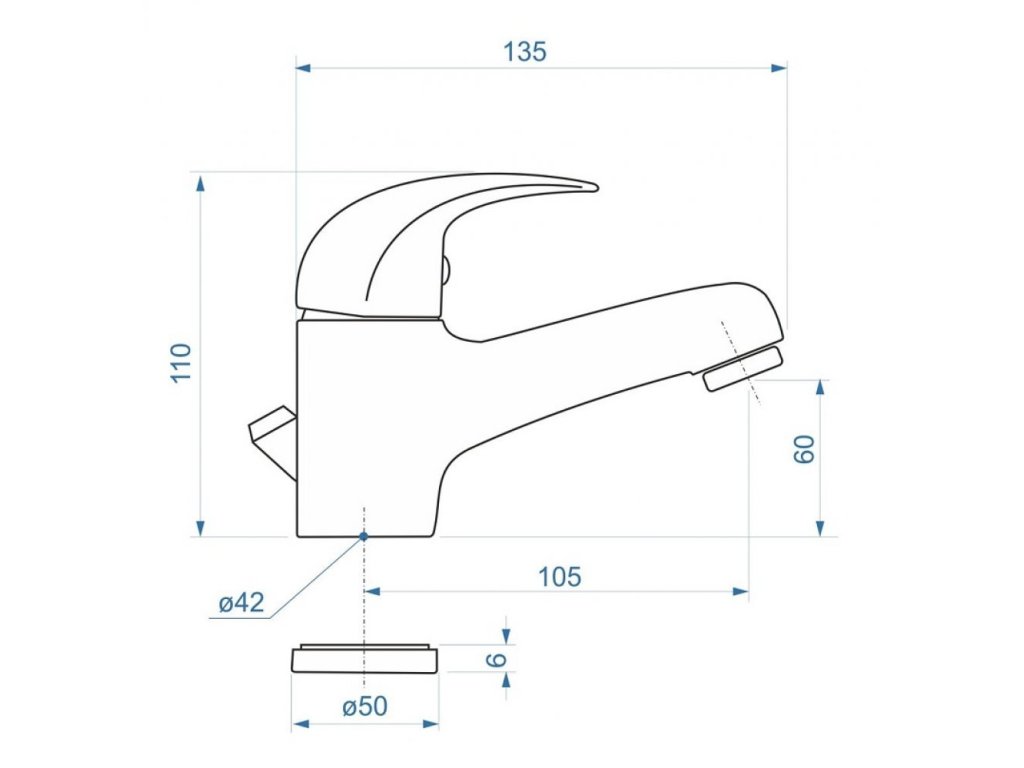 Páková umývadlová stojanková vodovodná batéria s odtokovou súpravou.