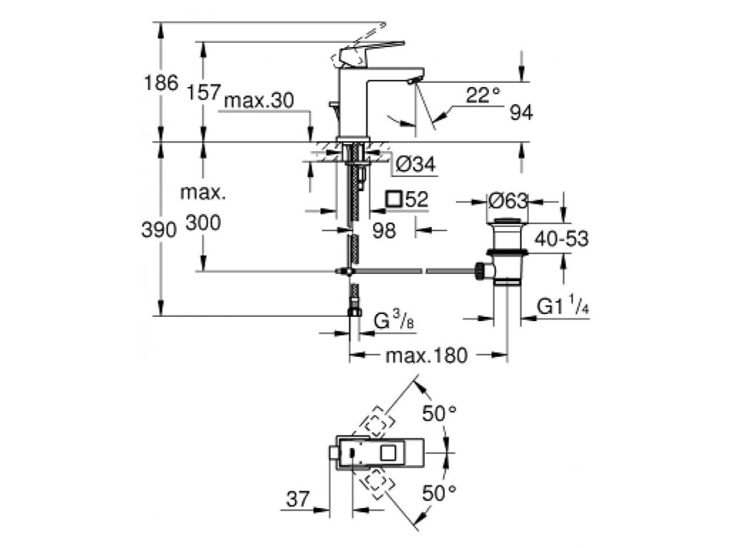 Umývadlová batéria stojanková EUROCUBE "S" s odtokovou súpravou