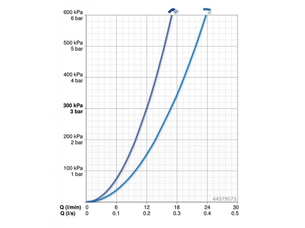 Prietok meraný pri hydraulickom tlaku 3 bar: 16,8 l/12 l/min. (vaňa/sprcha).