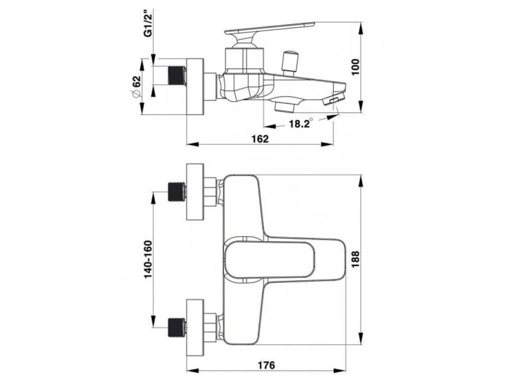 Páková vaňová stenová vodovodná batéria s automatickým prepínačom vaňa/sprcha. Súčasťou balenia sú etážky i krycie ružice. Dodávané bez sprchového príslušenstva.