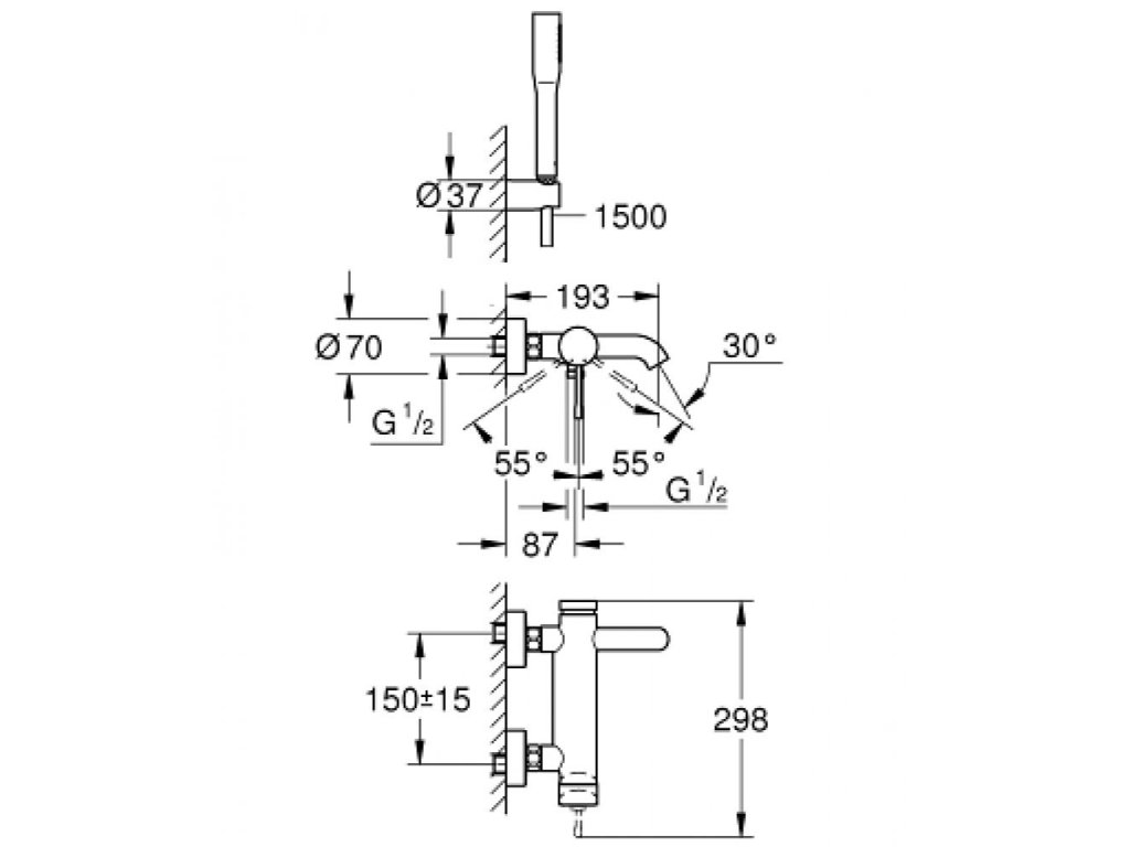 Vaňová batéria ESSENCE s ručnou sprchou, hadicou a držiakom, chróm
