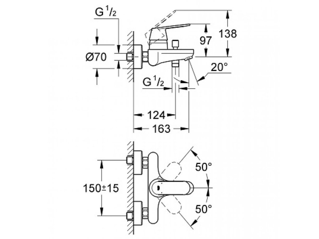 Vaňová batéria nástenná EUROSMART COSMOPOLITAN, chróm