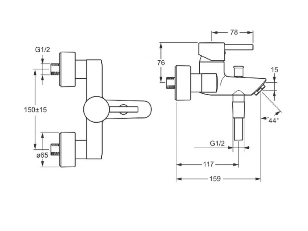 HANSAVANTIS - vaňová stenová vodovodná batéria s PIN-tyčinkovou pákou so symbolom teplej a studenej vody. Prepínač s automatickým resetom.