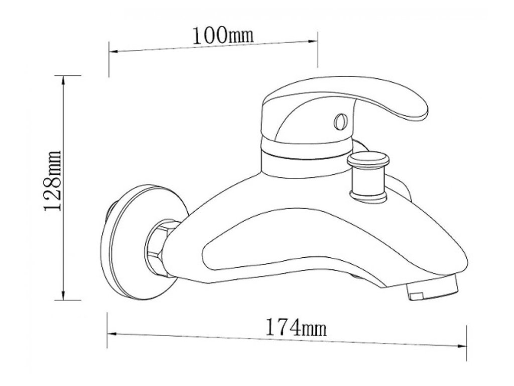 Páková vaňová stenová vodovodná batéria bez príslušenstva. Súčasťou balenia sú etážky aj krycie ružice. Prepínač režimu vaňa/sprcha je aretovateľný.Rozstup batérie je 100mm.