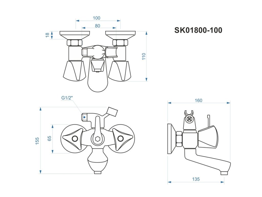 Klasická vaňová stenová vodovodná batéria bez príslušenstva. Súčasťou balenia sú etážky aj krycie ružice.Rozstup batérie je 100mm.