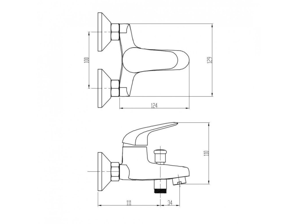 Páková vaňová stenová vodovodná batéria, dodávané bez sprchového príslušenstva. Má chrómovú povrchovú úpravu.