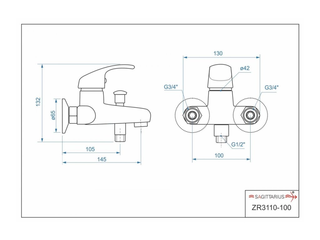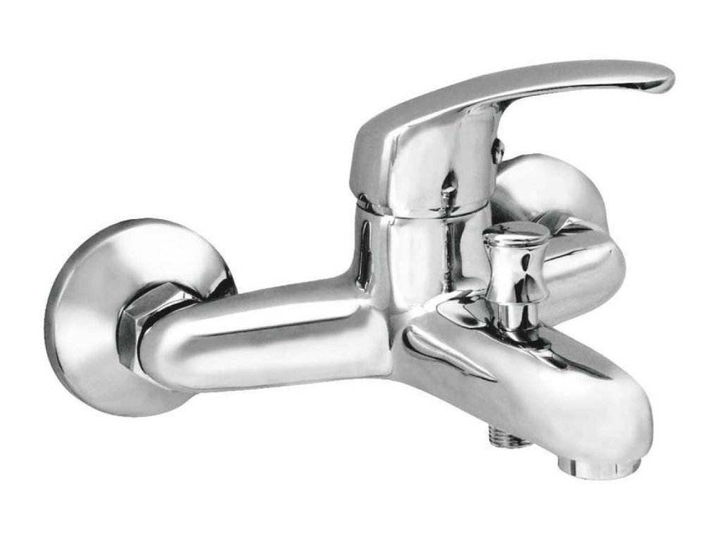 Páková vaňová stenová vodovodná batéria bez príslušenstva. Súčasťou balenia sú etážky aj krycie ružice. Prepínač režimu vaňa/sprcha je aretovateľný.Rozstup batérie je 100mm.